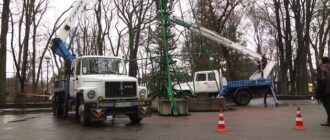 У центрі Хмельницького цього року встановлять новорічну ялинку без витрат з міського бюджету За інформацією: Суспільне Хмельницький. У сквері ім Тараса Шевченка розпочали встановлювати головну ялинку, Хмельницький, Новини Хмельницького 09.12.2025