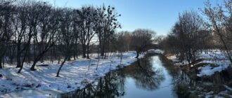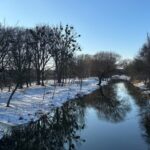 Вночі ожеледиця на дорогах, вдень — до 10°C тепла: якою буде погода 5 березня на Хмельниччині За інформацією: Суспільне Хмельницький. Весняний пейзаж із річкою, що протікає між засніженими берегами, 2 Новини Хмельницького 04.03.2026
