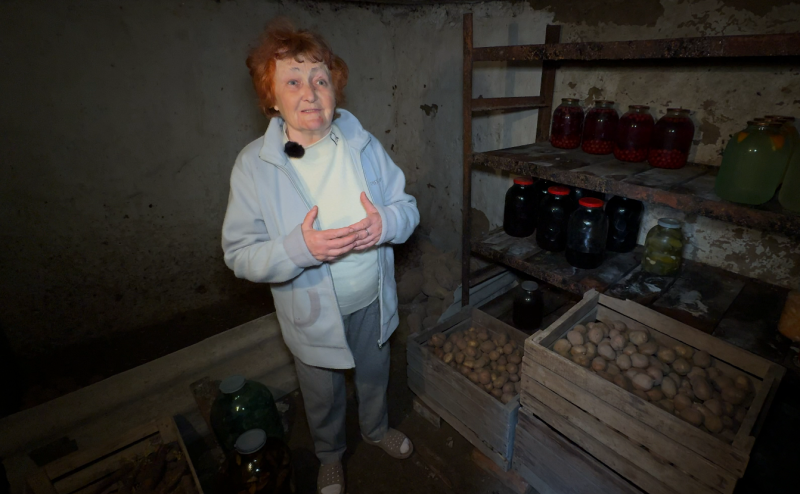 "Це для їжі залишилися два відра, перебрала. Це ще ящик перебрала насіннєвої, два ящика було, ще ящик треба докупити. А там бараболька мілка куркам".