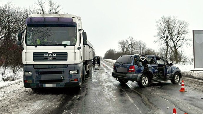 "39-річний житель Миколаївської області, керуючи автомобілем "Kia", допустив зіткнення із припаркованим на узбіччі вантажним автомобілем "MAN". У результаті ДТП травмувалася 17-річна пасажирка легковика. Її госпіталізували до Ярмолинецької багатопрофільної лікарні", — йдеться у повідомленні.