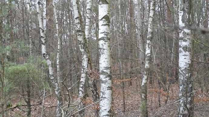 Берези в лісі на Хмельниччині, грудень 2025 року. Суспільне Хмельницький