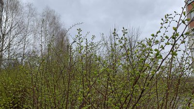 Перше листя на кущах в одному з мікрорайонів Хмельницького, 9 квітня 2026 року. Суспільне Хмельницький