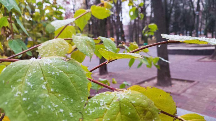 Сніг на лситочках дерева, грудень 2024. Суспільне Хмельницький