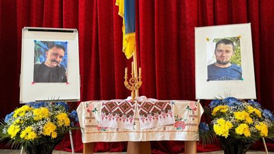 Портрети братів Хілінських з квітами на посмертному нагородженні державними нагородами, квітень 2026 року, Хмельниччина. Хмельницька РДА