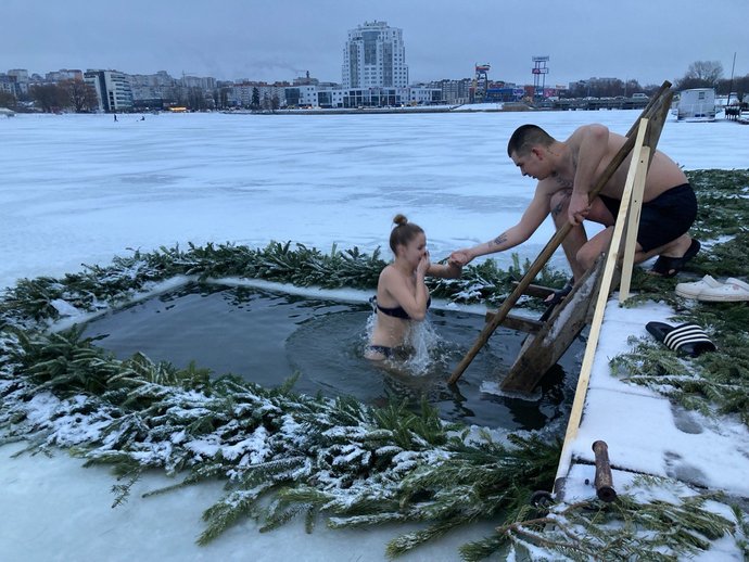 За словами начальника караулу першої Державної пожежно-рятувальної частини міста Артура Шеремета, для охочих зануритись в ополонку в Хмельницькому облаштували два місця для купання. Також розгорнули намети для обігріву.