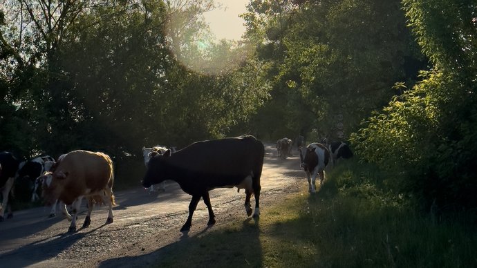 Корови ідуть з пасовиська додому, Хмельниччина. Суспільне Хмельницький/Ярина Коцюбинська