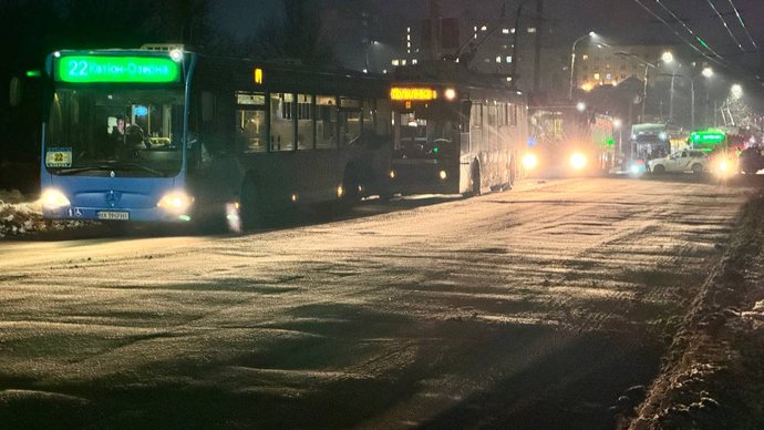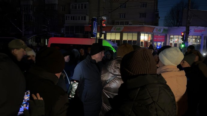 Учасники акції перекрили рух громадському транспорту, Хмельницький, 21 січня 2026 року. Суспільне Хмельницький