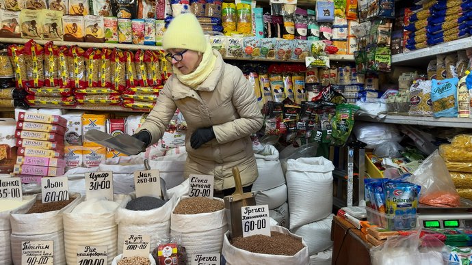 За словами продавчині круп Лариси Порохненко , ціна на гречку на базарі зростає, 5 березня 2026 року. Суспільне Хмельницький