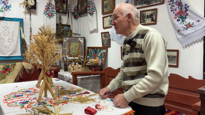 "Він вимолочується. І те зерно, яке вимолочене з тих колосків, з яких зроблено дідух, воно першим засівалося під час весняних польових робіт. А солома від дідуха, що залишилася, вона також використовувалась в обрядах. Її спалювали, і димом від цієї соломи обкурювали садок, щоб не було шкідників і рясно родили дерева", — пояснив завідувач музею.