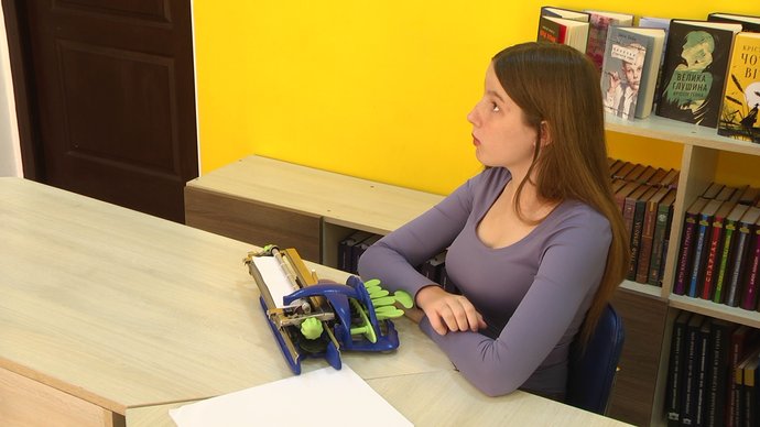Одинадцятикласниця Ольга Бучина навчилася писати шрифтом Брайла у початкових класах, 27 жовтня 2025 року, Хмельниччина. Суспільне Хмельницький
