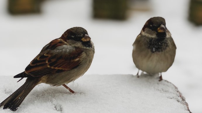 Горобці сидять на снігу, Хмельниччина. Суспільне Хмельницький/Ярина Коцюбинська