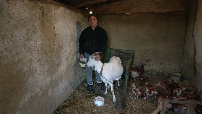 Андрій тримає на господарстві курей та кіз, грудень 2025 року, Хмельниччина. Суспільне Хмельницький