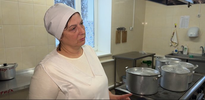 Кухарка дитячого садочку Валентина Марчук зазначила, їжу зазвичай у садочку готують на електричній плиті на 6 конфорок. Того дня, коли зроблене відео, каже, на обід варили вермішелевий суп з м’ясом.