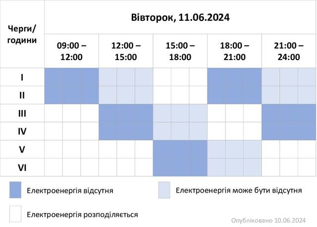 Графік відключень на 11 червня.
