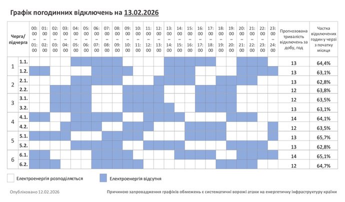 Графік відключення світла 13 лютого. Хмельницькобленерго