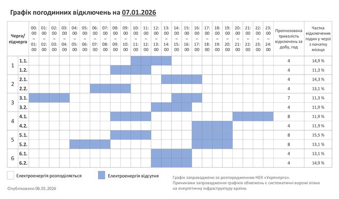 Завтра, 7 січня, на Хмельниччині діятиме графік погодинних відключень та графік обмеження споживання електричної потужності.