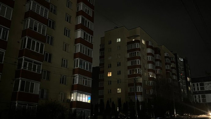Будинки одного з мікрорайонів обласного центру під час відключень електроенергії, лютий-2026 року. Суспільне Хмельницький