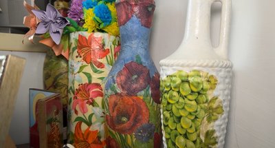 Вироби, які декорувала Наталія за допомогою паперових серветок і лаку. Суспільне Хмельницький