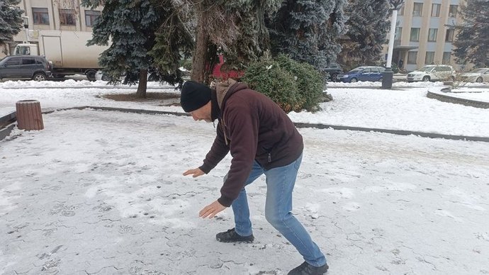 Спосіб ходьби, щоб не впасти під час ожеледиці, листопад 2024 року, Хмельницький. Суспільне Хмельницький