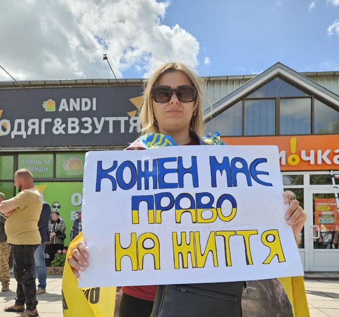 Вероніка на акції “Поверніть героїв з полону. Знайдіть безвісти зниклих” у Хмельницькому. Вероніка