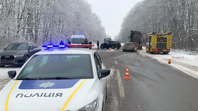 На Кам’янеччині поліцейські з’ясовують обставини ДТП, 22 січня 2026 року, Хмельниччина. Поліція Хмельницької області