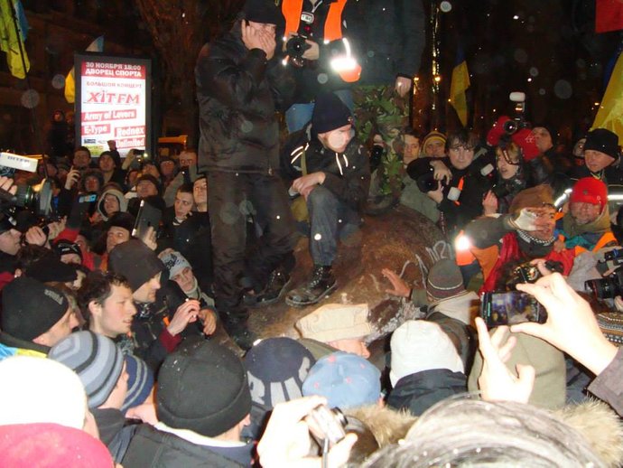 "Як момент найбільшого емоційного підйому згадався день, коли повалили пам’ятник Леніну на БессарабціПам'ятник Володимиру Леніну в Києві, розташований на бульварі Тараса Шевченка поблизу Бессарабської площі, був повалений 8 грудня 2013 року під час подій Євромайдану. Монумент, який стояв неподалік від Бессарабки, було демонтовано активістами, що стало символічним початком масового "ленінопаду" в Україні. . Здавалося раніше, що він там стоятиме вічно, і за кілька годин все змінилося. Це була як точка неповернення до радянщини, радість була – неймовірна".