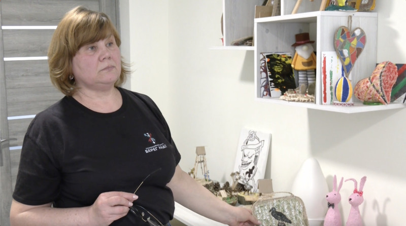 "Ми працюємо з різним матеріалом. Це фарби, якими малюємо картини. Це скульптури. Це робота з ниткою. Це військовий, настільки був поранений, що скрізь у своїх роботах робив одну й ту саму тему – поляну, де загинули його побратими. Де посадка побита, і де скрізь ворони", — розповіла арт-терапевтка.