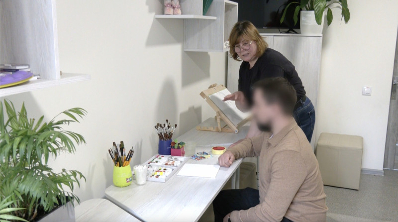 Ветеран із позивним “Барс” на арт-терапії, квітень 2026 року, Хмельниччина. Суспільне Хмельницький