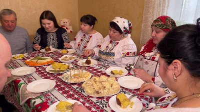 Родина частує приготований макаран та інші страви, лютий 2026 року, Хмельниччина. Суспільне Хмельницький
