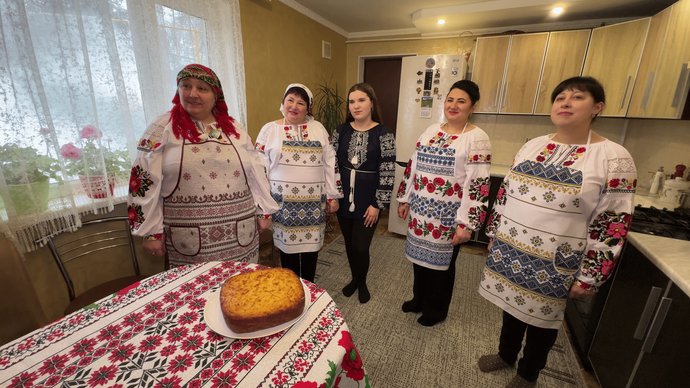 Господині в українському вбранні на кухні, лютий 2026 року, Хмельниччина. Суспільне Хмельницький