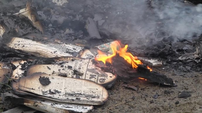 Згарище на місці влучання уламку російської ракети. 15 лютого 2024 рік. Фото: Суспільне Хмельницький