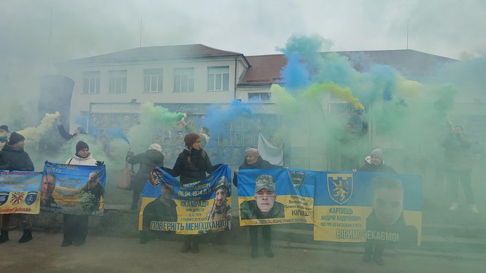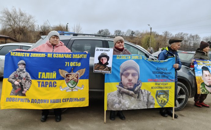Зі слів учасниці мирної акції Ганни Дячук, її чоловік зник безвісти навесні цьогоріч.