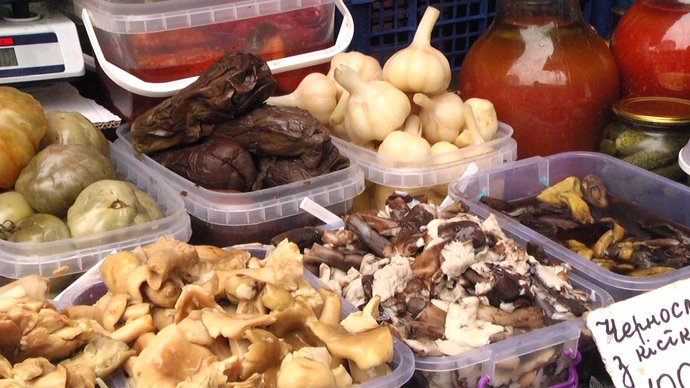 Маринована та солена продукція на ринку до свят користується попитом, грудень 2025 року, Хмельницький. Суспільне Хмельницький
