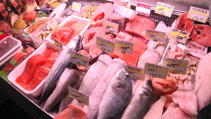 Також попит має риба — як свіжа, так і солона. Для багатьох покупців, у тому числі й для покупця Сергія, це обов’язкова частина святкового столу — як для закусок, так і для основних страв.