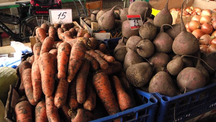 Морква, буряк, цибуля, капуста на прилавку на ринку, грудень 2025 року, Хмельницький. Суспільне Хмельницький