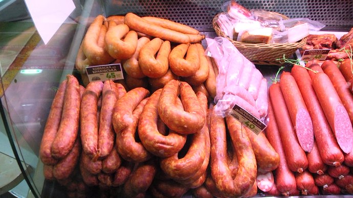 Ковбасні вироби на прилавках ринку, грудень 2025 року, Хмельницький. Суспільне Хмельницький