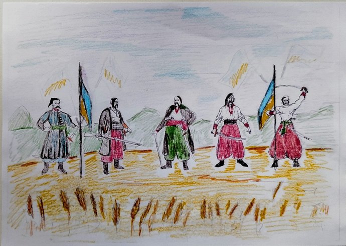- Мурал/рисунок "Нація вільних" & "Козаки" (ліцей №5, автор Евеліна Маровецька)