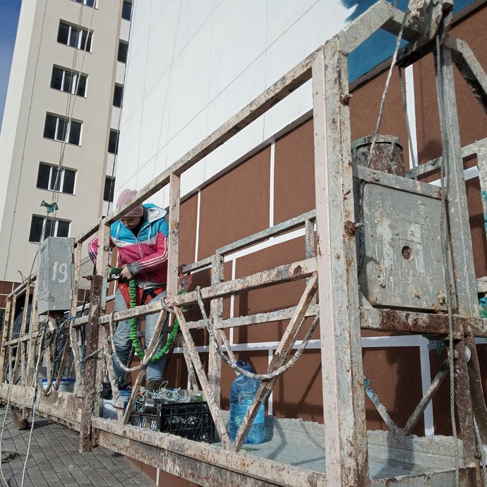 "Тут потрібно дотримуватися всіх правил безпеки, працювати зі страховкою, тому що висотні роботи – це найнебезпечніші роботи. На висоту обов’язково беру фарби, пензлики, валики, також ящик, де термос, олівці, канцелярський ніж, дрібніші деталі, воду, щоб мити пензлики, теплі рукавиці".
