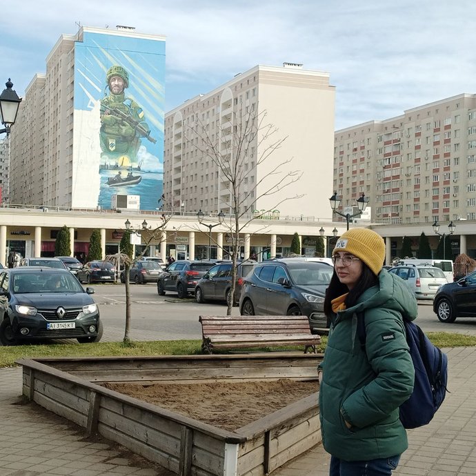 "Ця робота зараз найбільша з усіх муралів, які я робила в Києві, Ірпені, Гостомелі, Хмельницькому. Тут понад 33 метри висоти, і орієнтовно 17 метрів ширини".