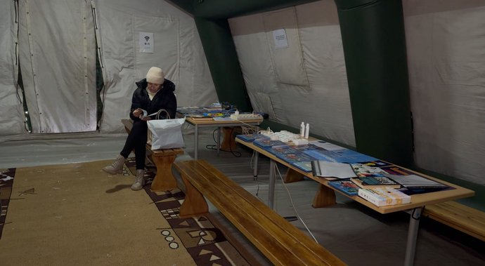 У пункті незламності облаштували місця, де можна зарядити телефони, 8 січня 2026 року, Хмельницький. Суспільне Хмельницький
