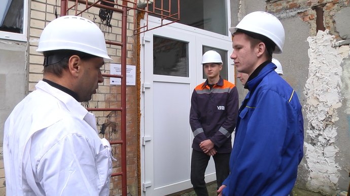 Майстер виробничого навчання Микола Микитчак розповів, інструктує групу перед практичною частиною — роботою на даху училища: "Їм же треба попробувати руками відкрутити, підкрутити ту панель, відключити, підключити. Там плоский дах, великий парапетПарапет — це невисока огорожа або стінка, яка розташована: по краю даху, балкона, тераси, моста чи сходів, і служить для безпеки (щоб не впасти) або для захисту від вітру, води тощо., усе безпечно".
