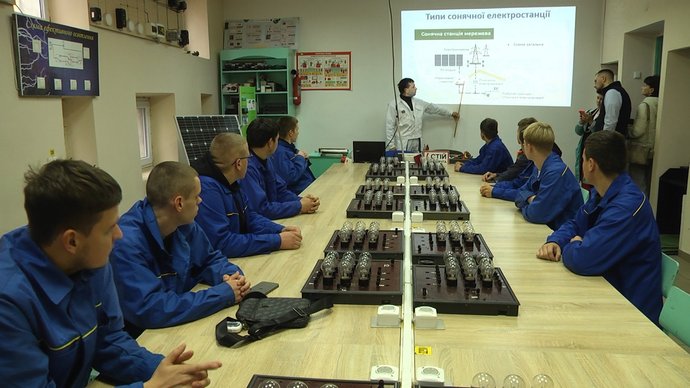 У Вищому професійному училищі №25 колишніх військових і вимушених переселенців безоплатно навчатимуть монтувати сонячні електростанції, листопад 2025 року, Хмельницький. Суспільне Хмельницький