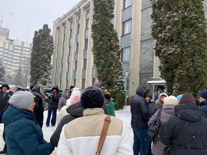 За її словами, також місцеві жителі хочуть дізнатись, чому у квартирах відсутнє тепло. Станом на 12:25 до акції долучились майже 30 людей.