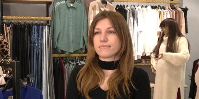 Власниця магазину одягу для вагітних та мам, що годують, — дружина військового Марина Омбиш. Вона розповіла, що магазин відкрила, скориставшись урядовою програмою "Грант для ветеранів та членів їхніх сімей". Каже, задумала таку справу, коли сама була вагітна.
