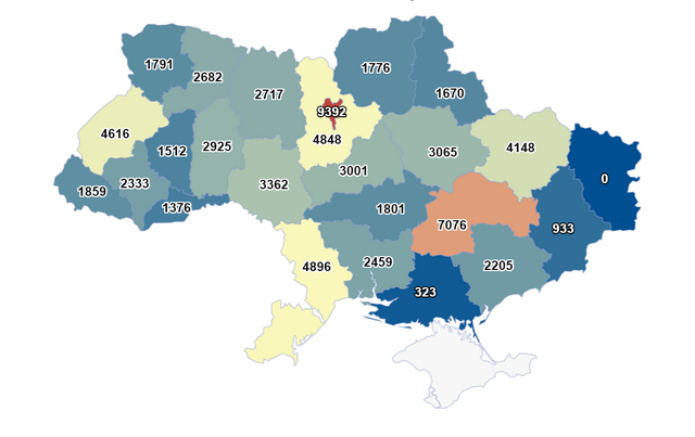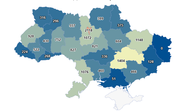 Найбільше пар одружилося у столиці, Дніпропетровській та Одеській областях. Найнижчі показники новостворених сімей на Херсонщині, Донеччині та Чернівецькій областях.