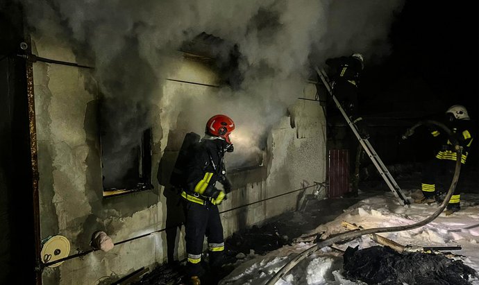 Загоряння будівлі на Хмельниччині, 2 лютого 2026 року. Пресслужба Головного управління ДСНС у Хмельницькій області