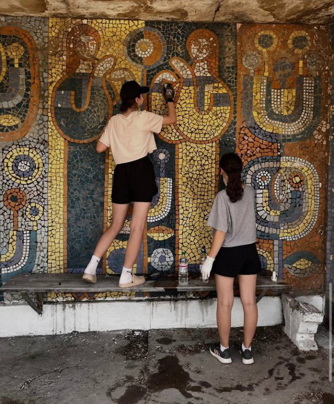"Ми не зациклювалися на процесі чистки, щоб не нашкодити ще більше. І тоді зрозуміли: якщо не демонтувати дах, зупинка може просто завалитися разом із мозаїкою".