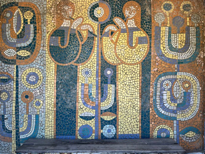 Зупинка з мозаїкою у селі Січинці на Хмельниччині. Олена Буштрук