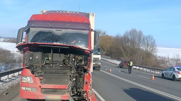 "54-річний житель міста Харків, керуючи автомобілем "MAN" з напівпричепом "KRONE SDR", зіткнувся з автомобілем "Ford Escape" під керуванням 49-річного жителя міста Харків. Внаслідок ДТП водій автомобіля "Ford" отримав тілесні ушкодження та був госпіталізований до Хмельницької обласної лікарні, лікарі оцінюють стан його здоров’я як середньої важкості", — йдеться у повідомленні.