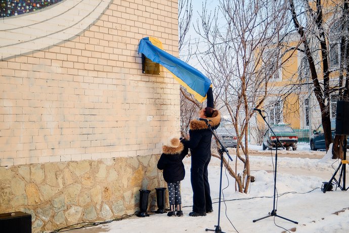 Право відкрити меморіальну дошку надали дружині та донці воїна.